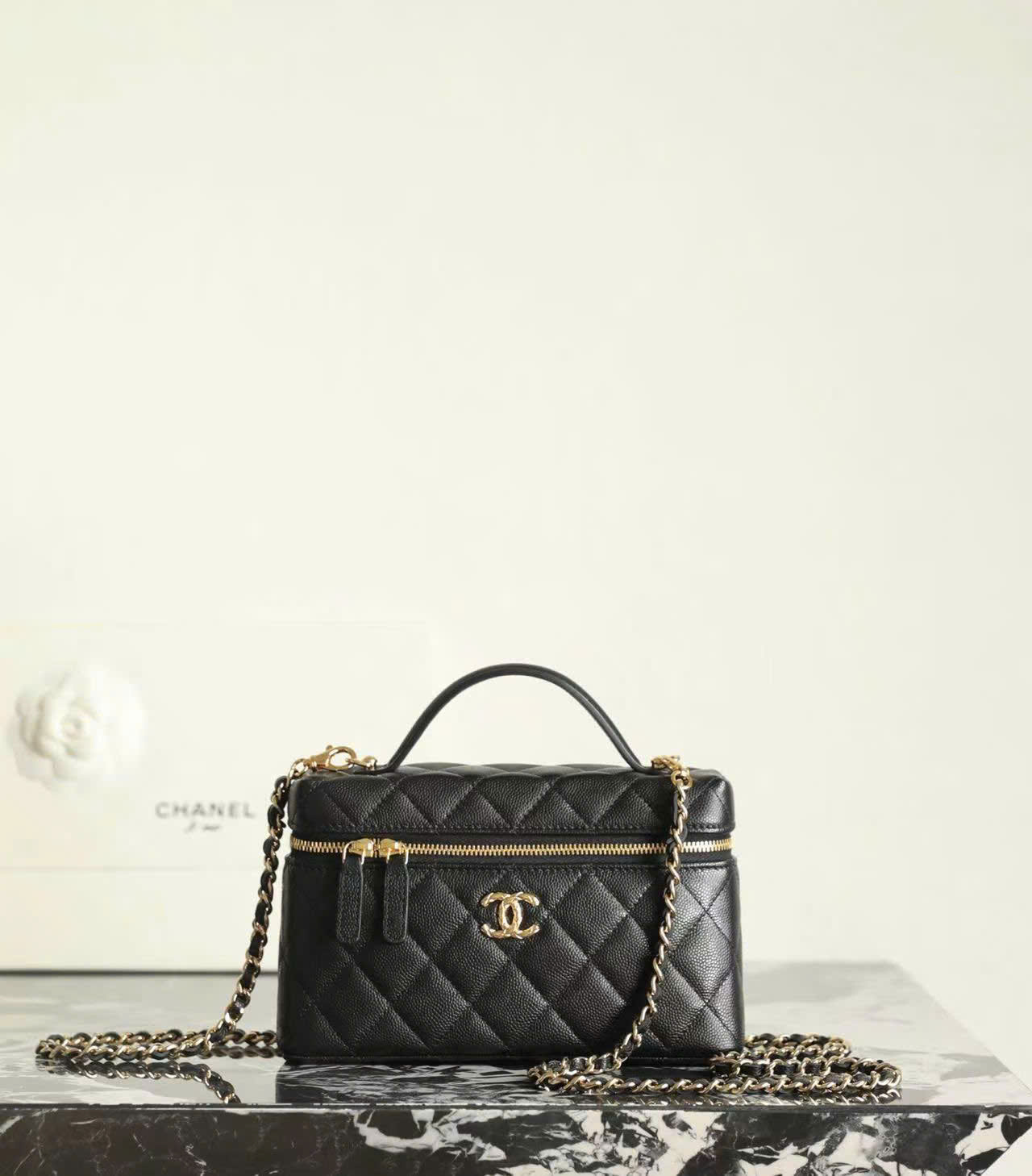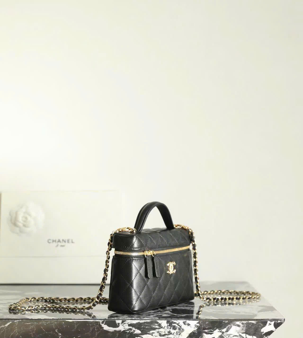 Hãy là người đầu tiên nhận xét “CHANEL VANITY HANDLE – BLACK – CAVIAR – GOLD CHAMPAGNE”