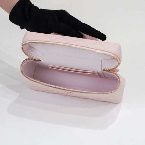 Chất liệu đẳng cấp: Được làm từ chất liệu cao cấp, túi Chanel Vanity Handle mang đến sự bền bỉ, mềm mại và vẻ ngoài sang trọng, dễ dàng phối hợp với mọi trang phục.