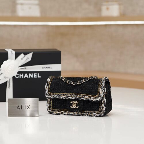 CHANEL CLASSIC MINI RECTANGLE – BLACK – TWEED – GOLD CHAMPAGNE