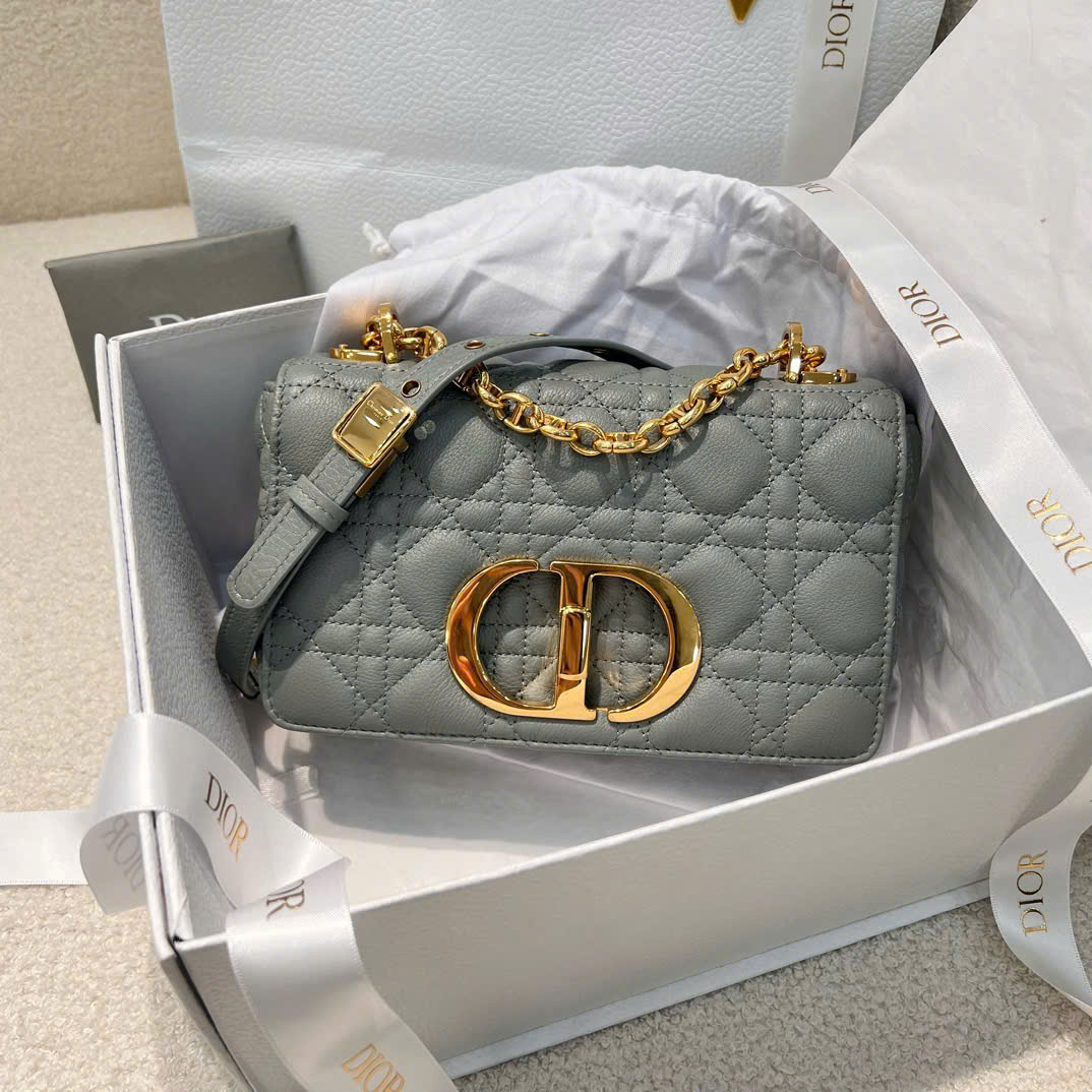 DIOR CARO – SMALL – GRAY – LAMBSKIN – GOLD