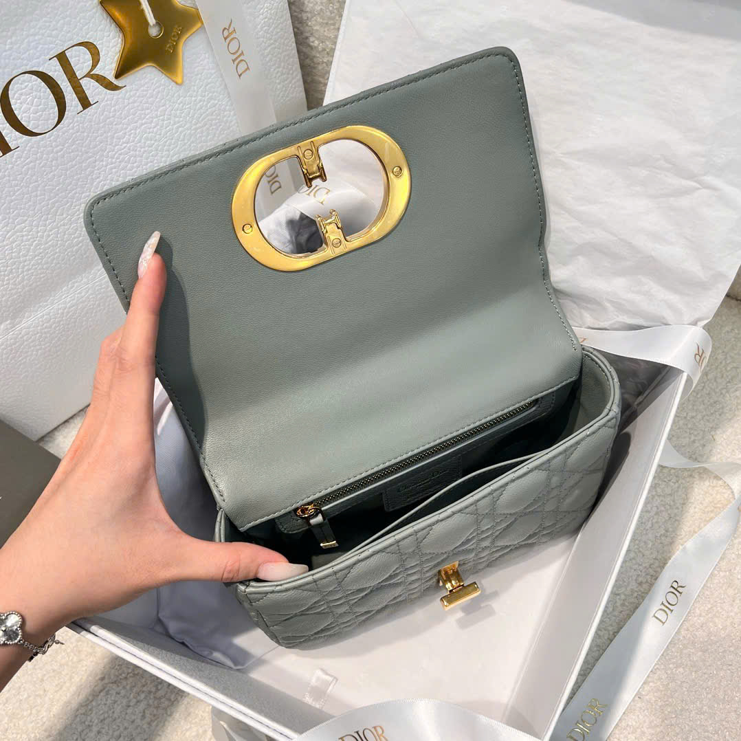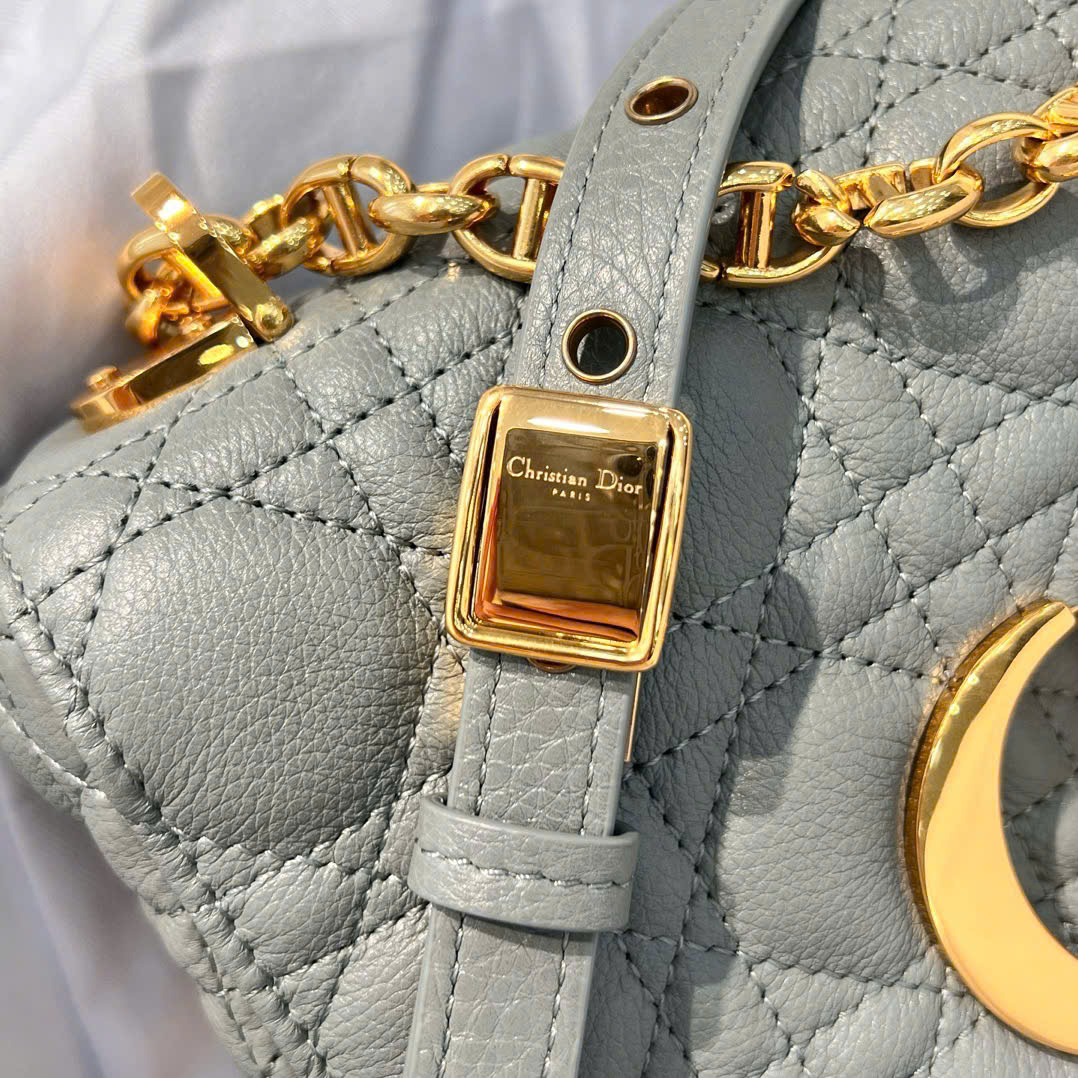 • Thiết kế tinh tế: Khóa kim loại mang logo Dior sang trọng, kết hợp với họa tiết chần bông mang đậm dấu ấn thương hiệu.