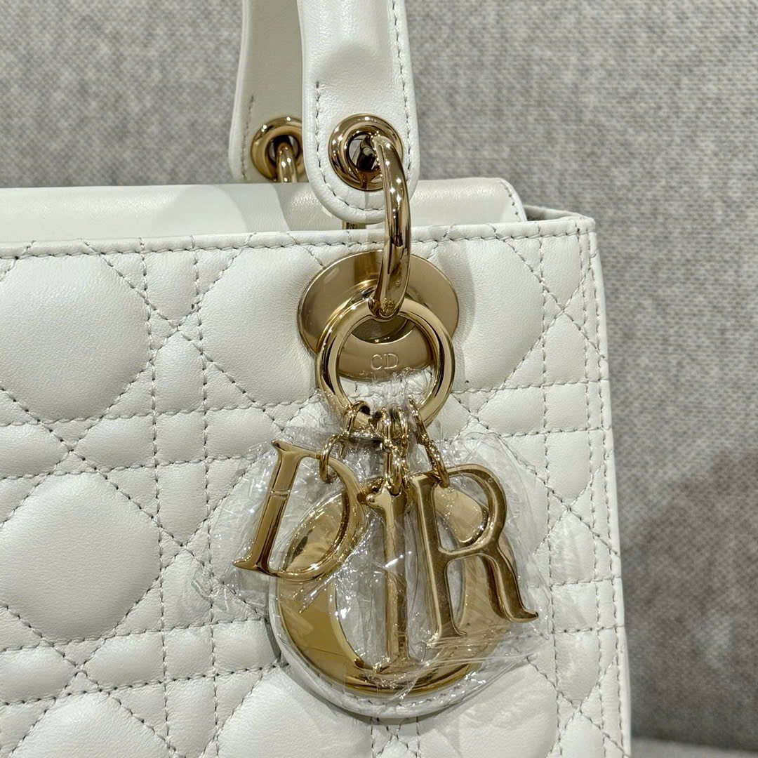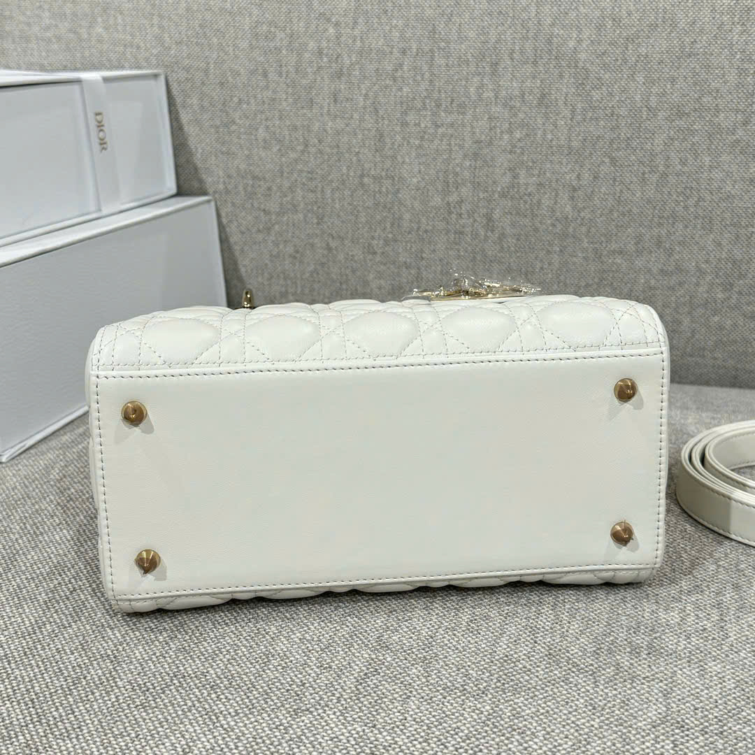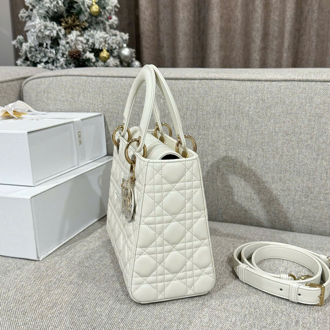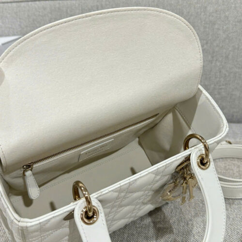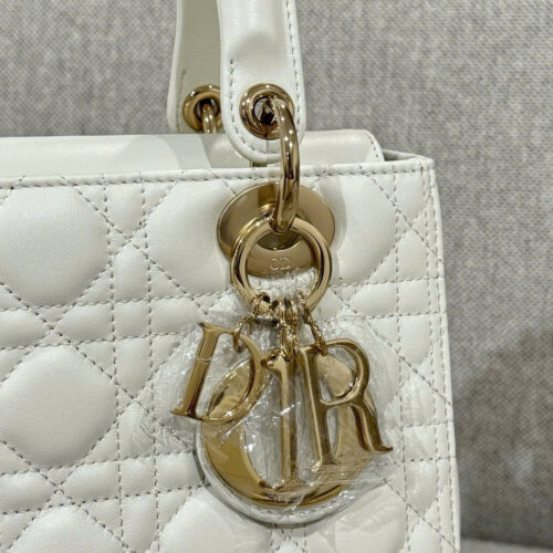 DIOR LADY – MEDIUM – WHITE – LAMBSKIN – GOLD