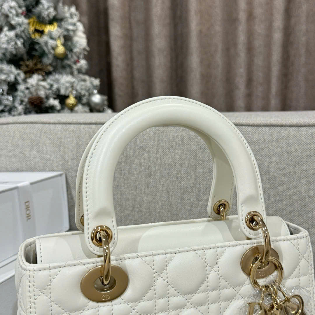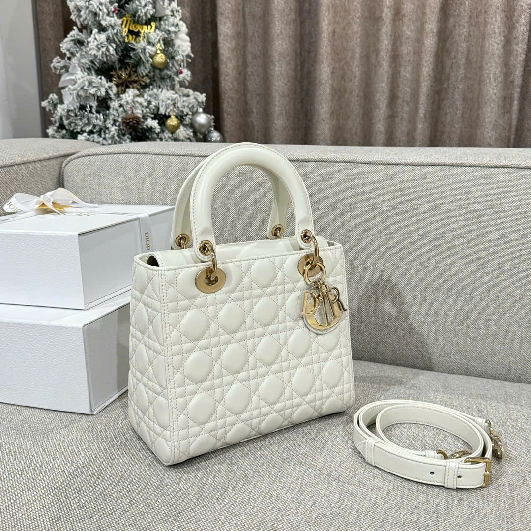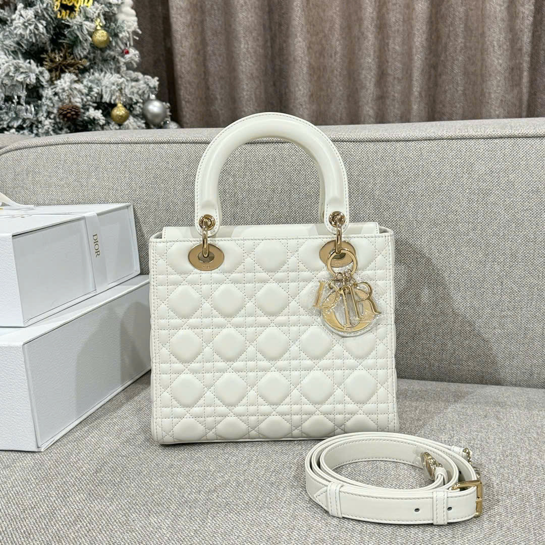 DIOR LADY – MEDIUM – WHITE – LAMBSKIN – GOLD
