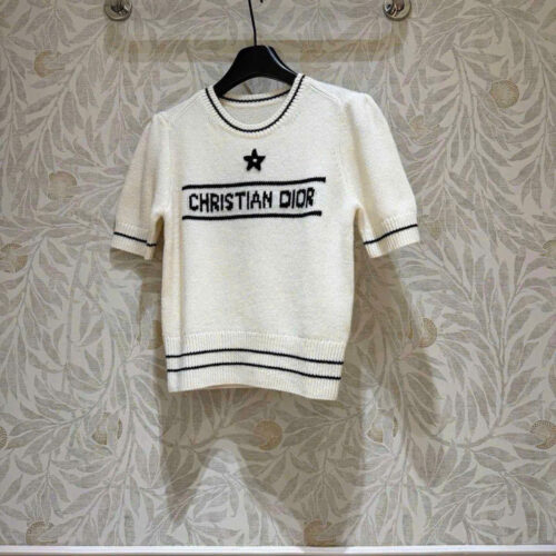 DIOR SHORT SLEEVED SWEATER – WHITE – CASHMERE