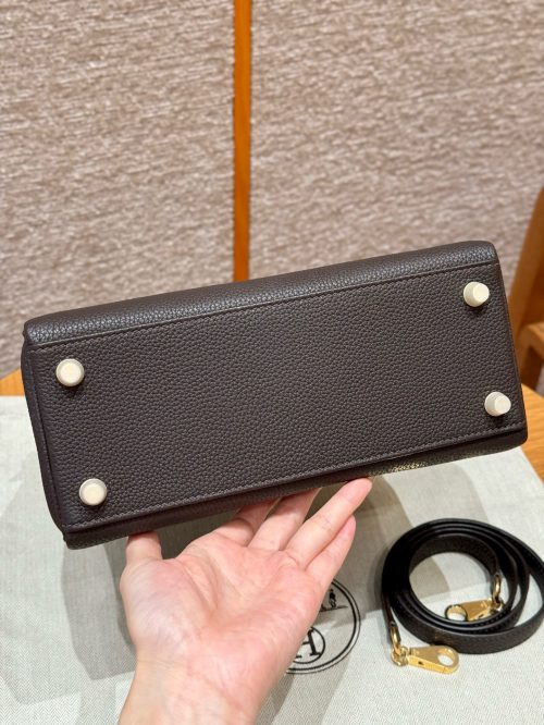 Chất liệu cao cấp: Được chế tác từ da Togo hoặc da Epsom mềm mại nhưng bền bỉ, túi Kelly 25 mang lại cảm giác tuyệt vời khi cầm nắm. Mỗi chi tiết trên chiếc túi đều được thực hiện thủ công tỉ mỉ, phản ánh sự tinh xảo của nghệ nhân Hermes.