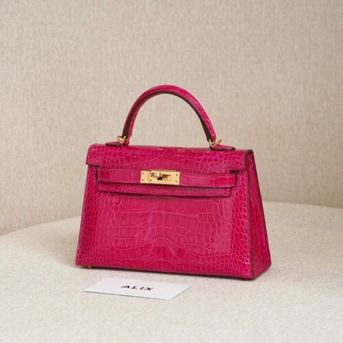 HERMES KELLY MINI – ROSE EXTREME – ALLIGATOR – GHW