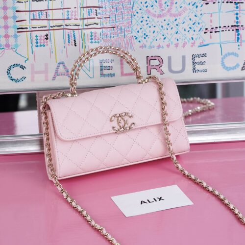CHANEL KELLY HANDLE – MINI – LIGHT PINK – LAMBSKIN – GOLD CHAMPAGNE