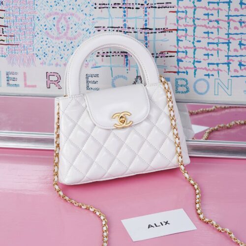 CHANEL KELLY HANDLE – MINI – WHITE – CAVIAR – GOLD CHAMPAGNE