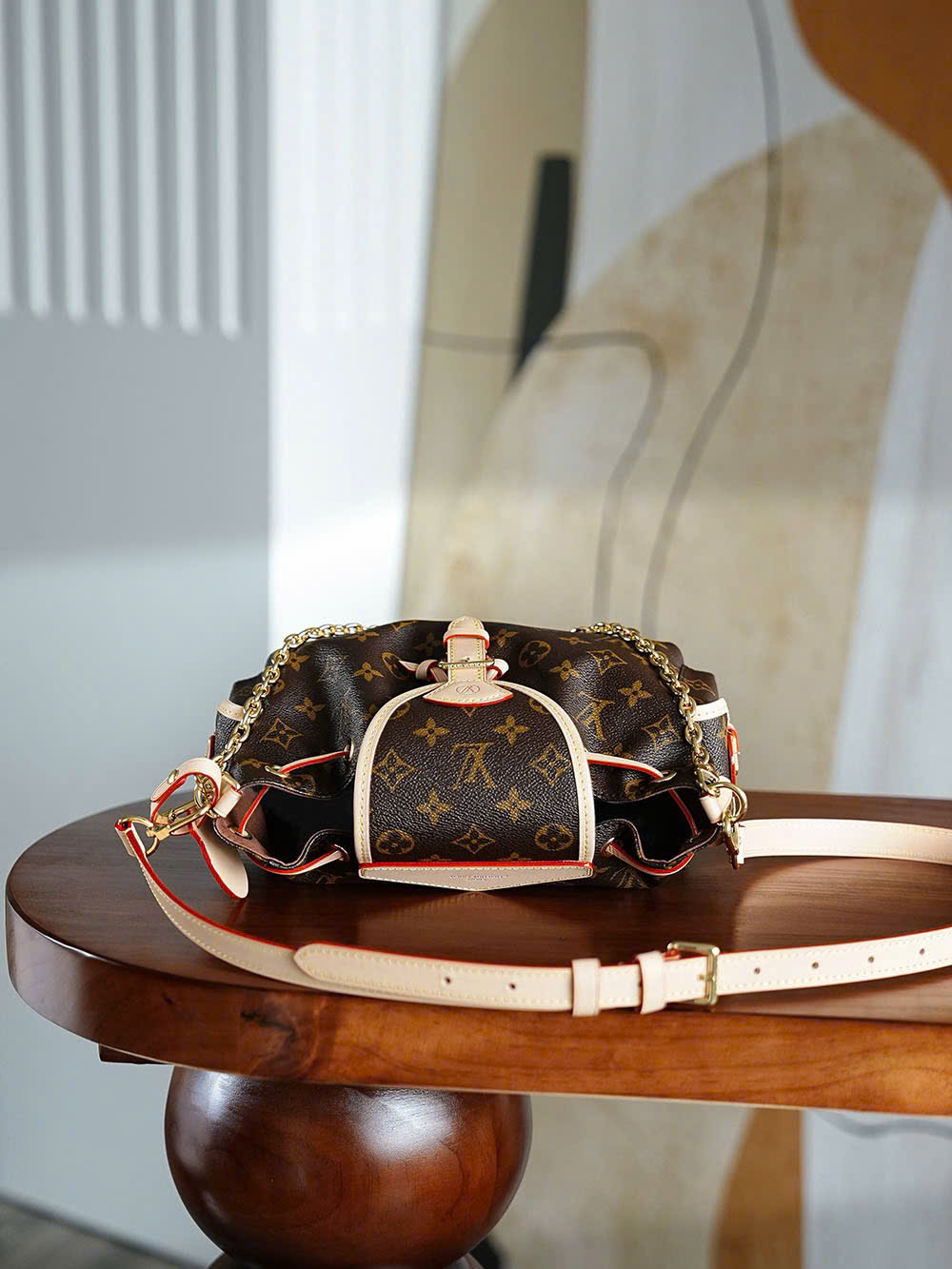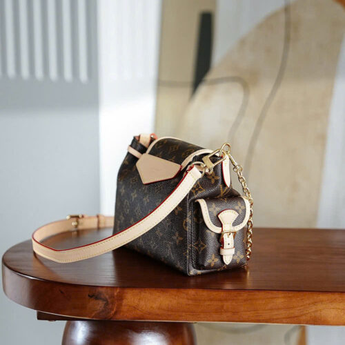 👜 Chất liệu cao cấp: Canvas Monogram / da bê tự nhiên, kết hợp phần cứng kim loại vàng sáng bóng sang trọng.