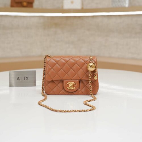 CHANEL FLAP BAG WITH CHAIN – MINI – CAMEL – LAMBSKIN – GOLD
