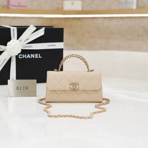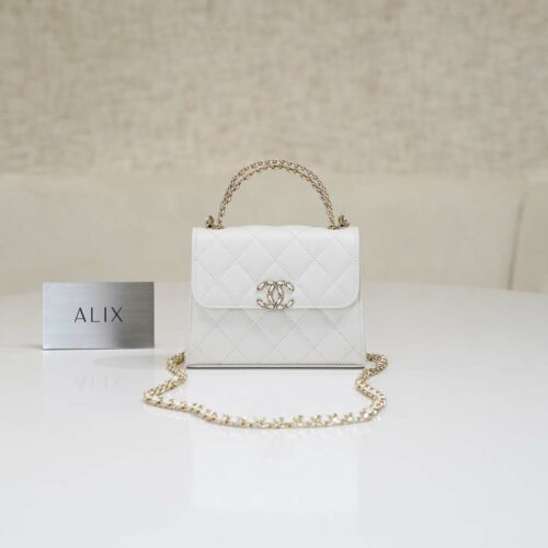 CHANEL VANITY HANDLE – WHITE – CAVIAR – GOLD CHAMPAGNE