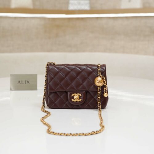 CHANEL FLAP BAG WITH CHAIN – MINI – DARK BROWN – LAMBSKIN – GOLD