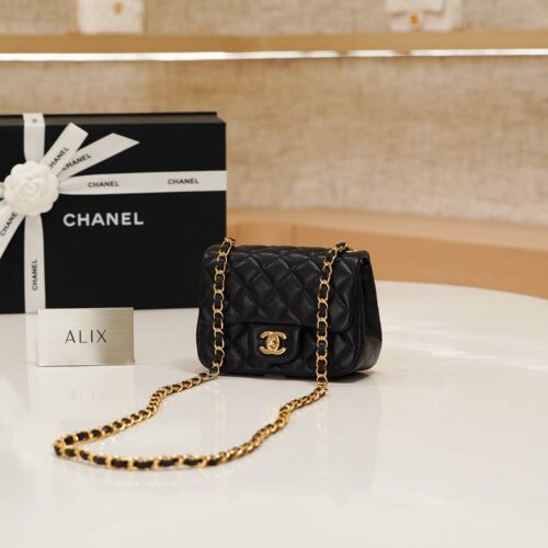 CHANEL CLASSIC – MINI – BLACK – CAVIAR – GOLD